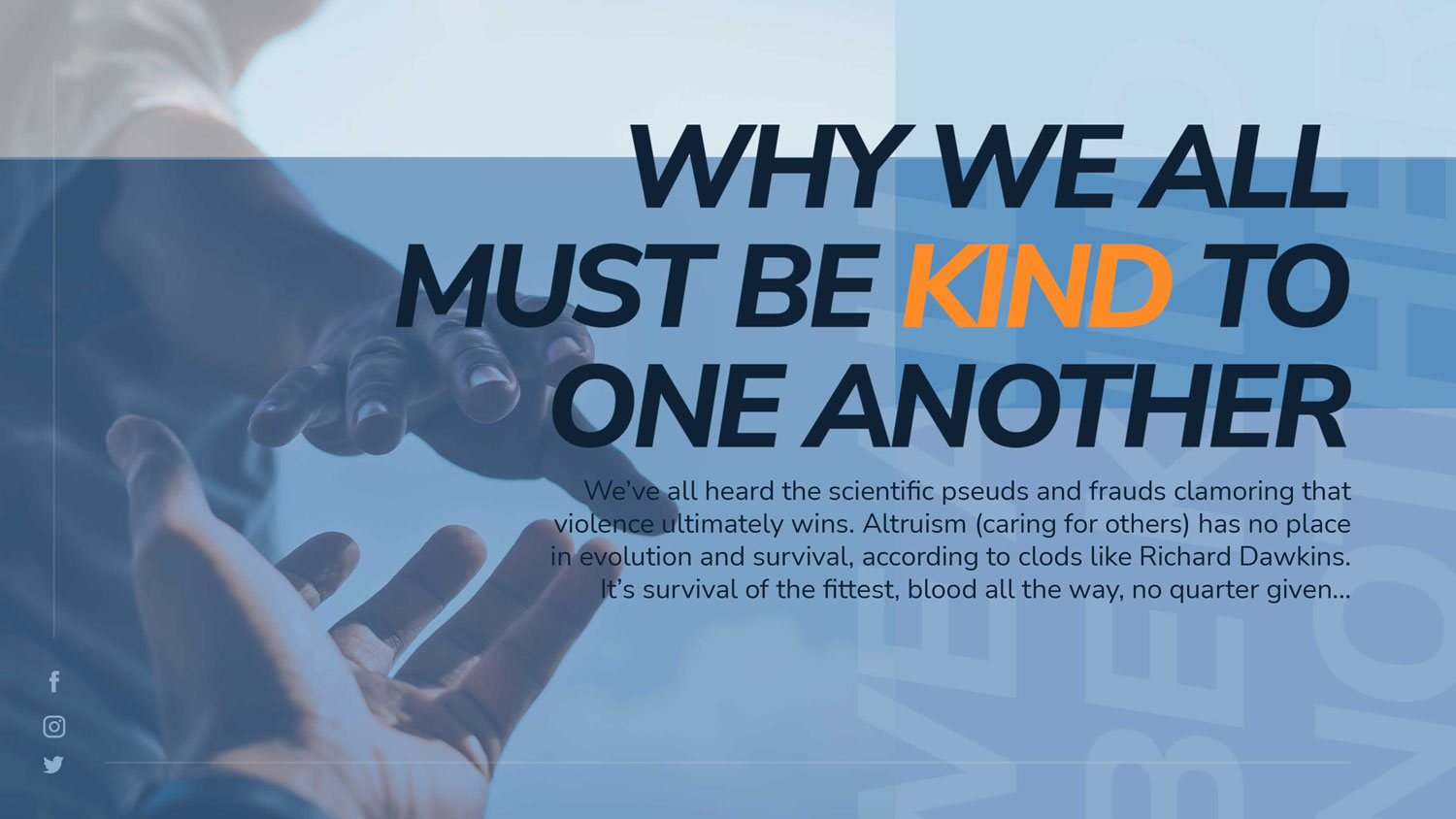 We’ve all heard the scientific pseuds and frauds clamoring that violence ultimately wins. Altruism (caring for others) has no place in evolution and survival, according