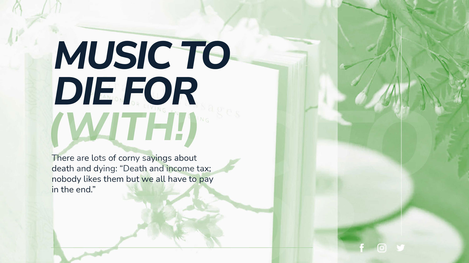 There are lots of corny sayings about death and dying: “Death and income tax; nobody likes them but we all have to pay in the